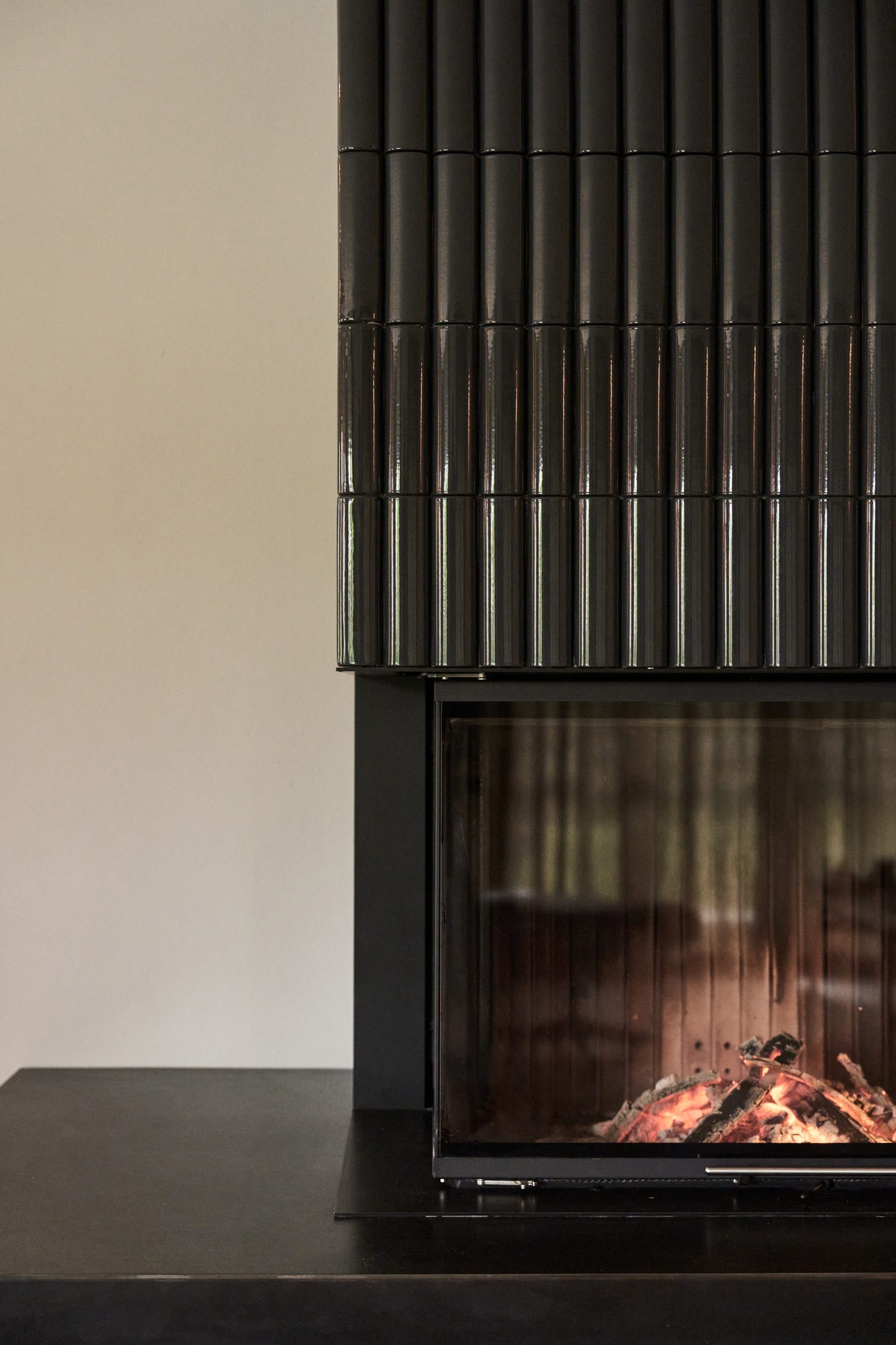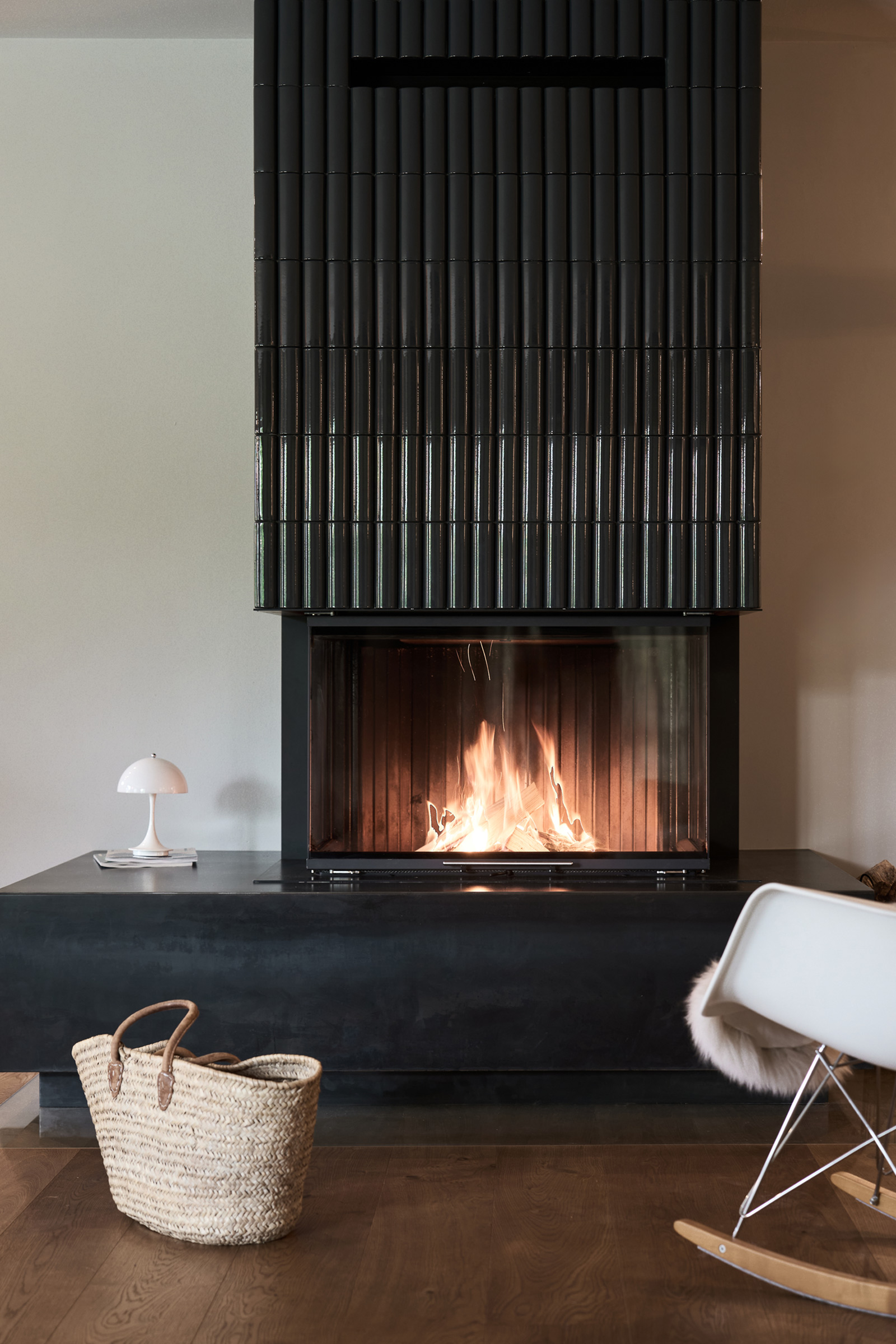 Dieser moderne Kaminofen erzählt eine Geschichte - von Tradition und Moderne, von Feuer und Form. Seine Verkleidung aus handgearbeiteten Kacheln erinnert an die jahrhundertealte Handwerkskunst klassischer Kachelöfen. Doch hier wurden sie neu interpretiert: klar, geradlinig und stilvoll in ein modernes Wohnkonzept eingebunden. Der Feuertisch aus Rohstahl verleiht dem Kamin eine zeitgenössische Note, die Stärke und Beständigkeit ausstrahlt.