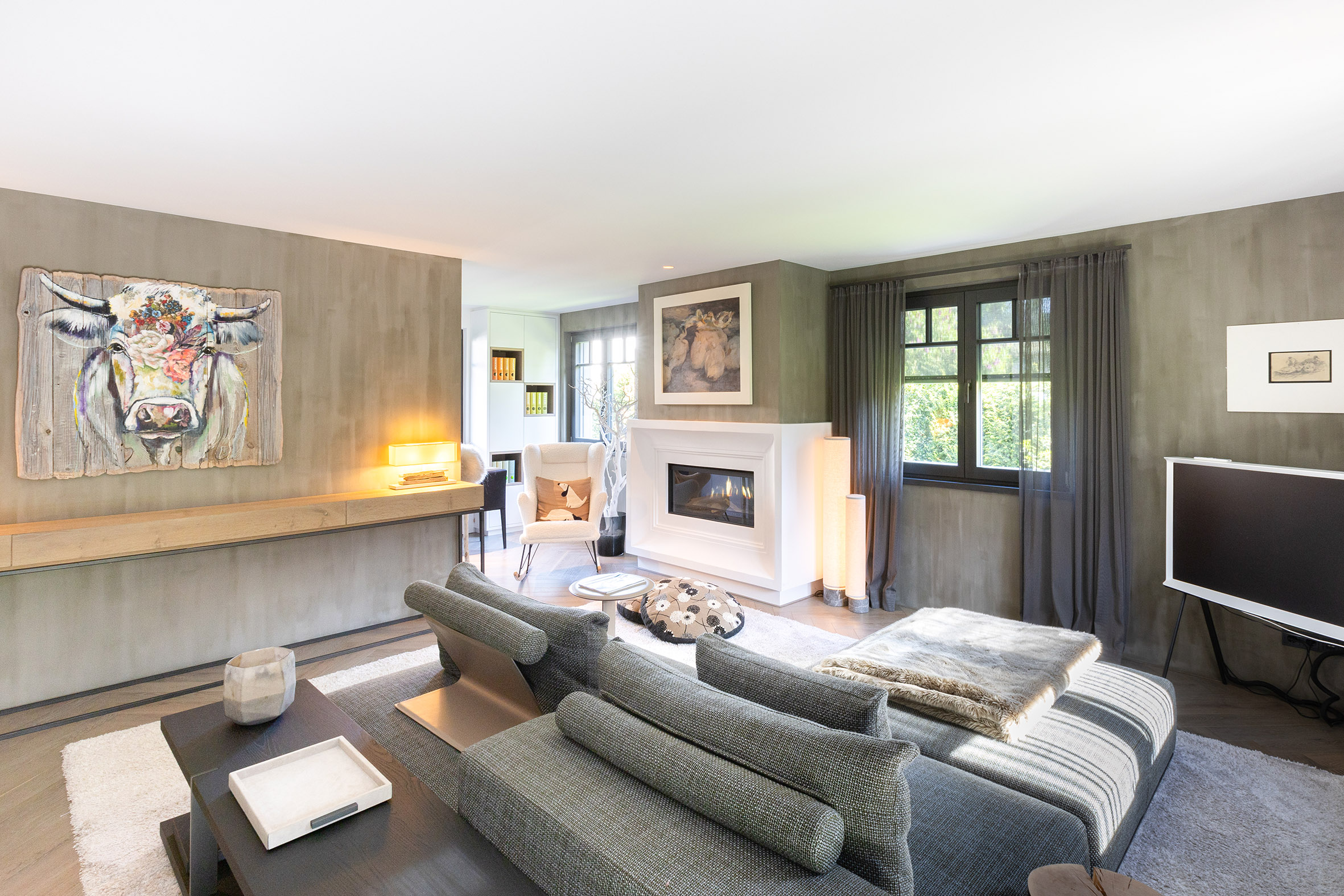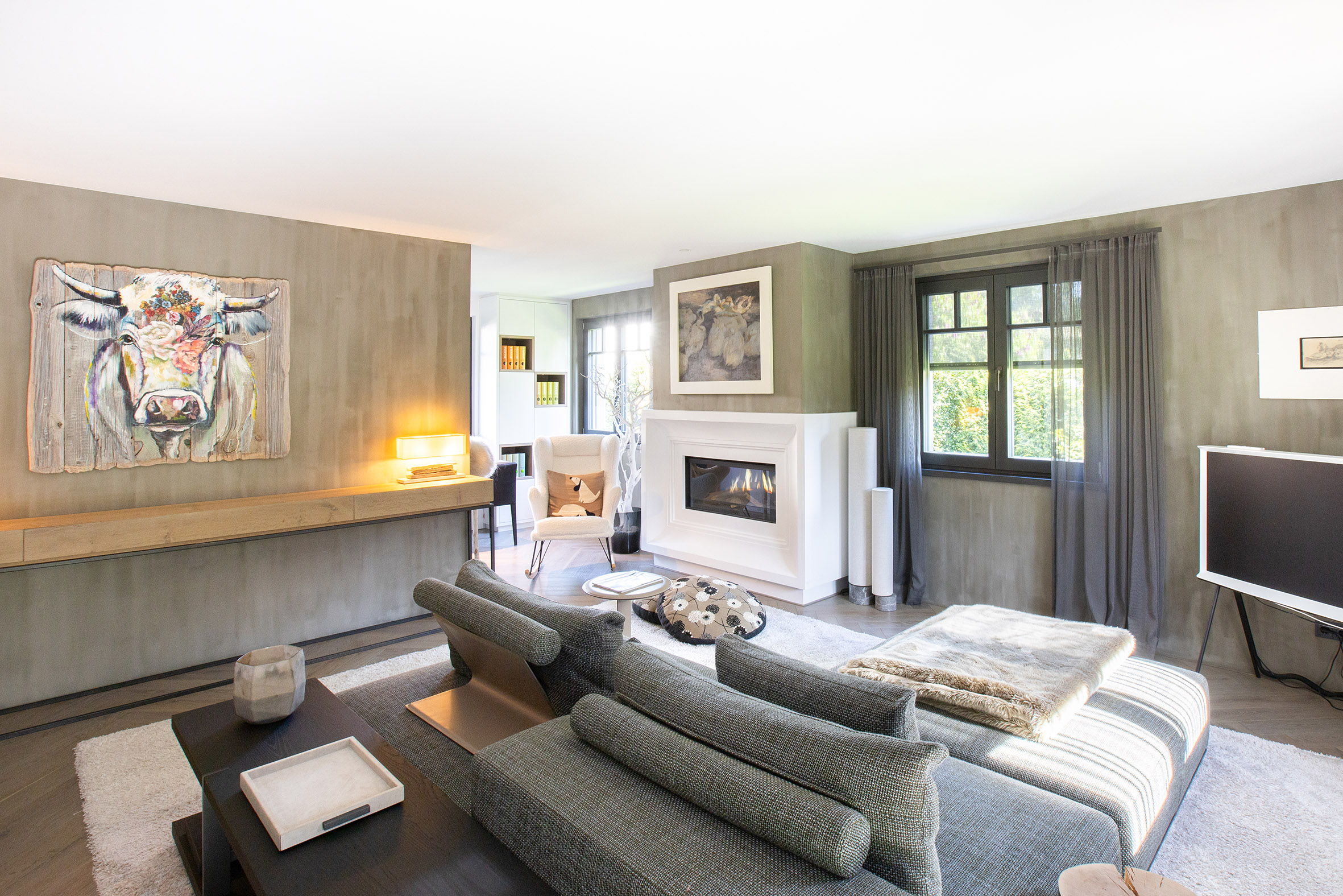 Ein Elektrokamin, der bei Bedarf wohlige Wärme spendet und ansonsten für ein behagliches Ambiente sorgt, ist ein wahres Juwel in jedem zuhause. Die filigranen Details und die hochwertige sowie stuckartige Verarbeitung der Kaminmaske machen den Kamin zu einem Blickfang und unterstreichen seine ästhetische Raffinesse.