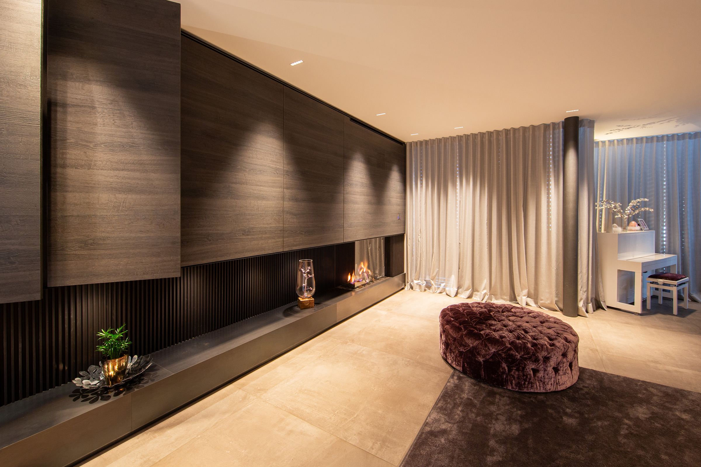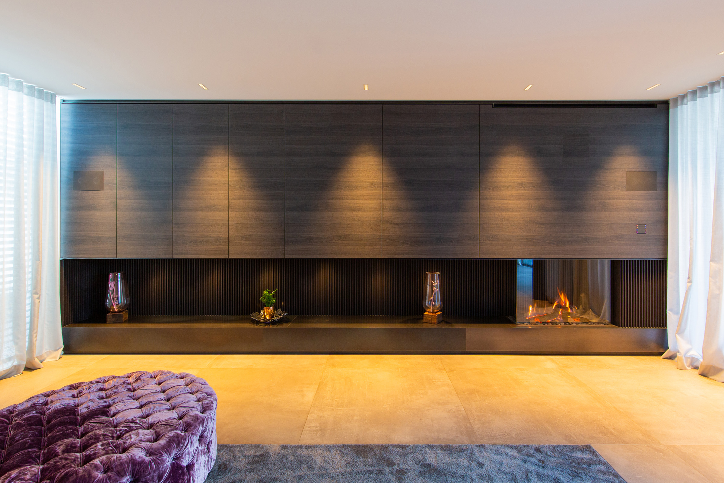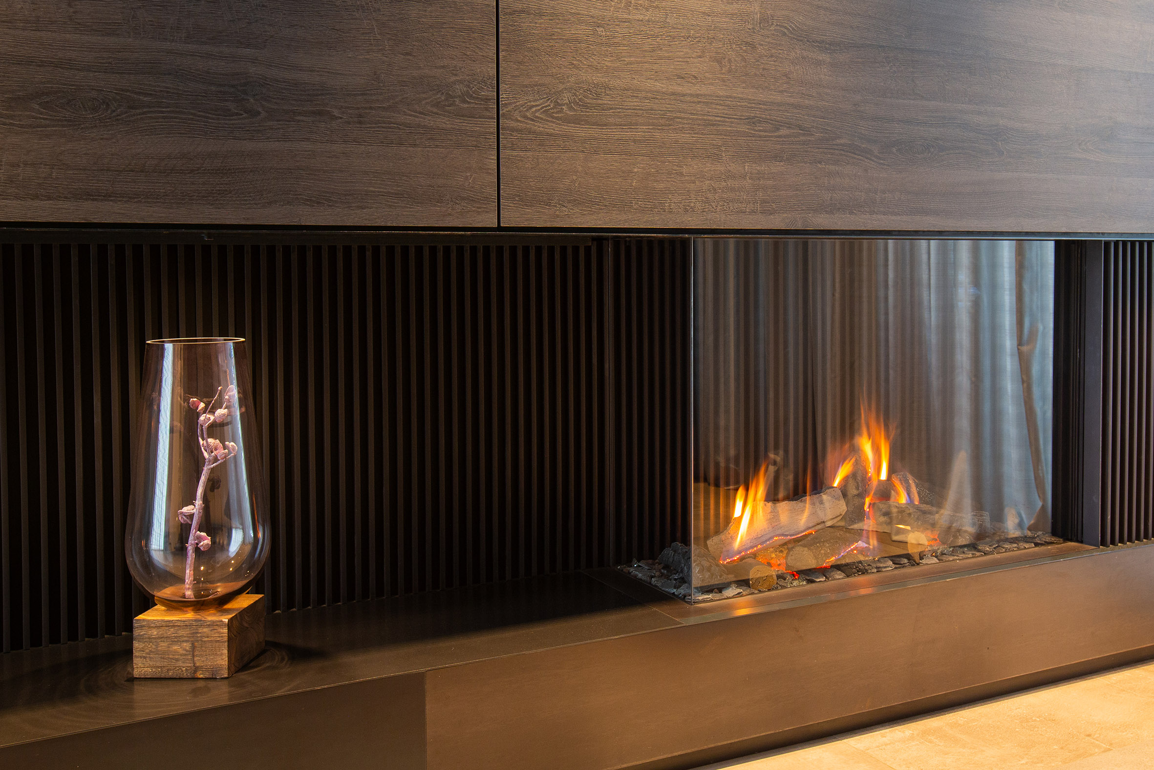 Die klare Linienführung der Lamellen unterstreicht die zeitgenössische Ästhetik und machen diesen Kamin zu einem Highlight jeder modernen Inneneinrichtung.